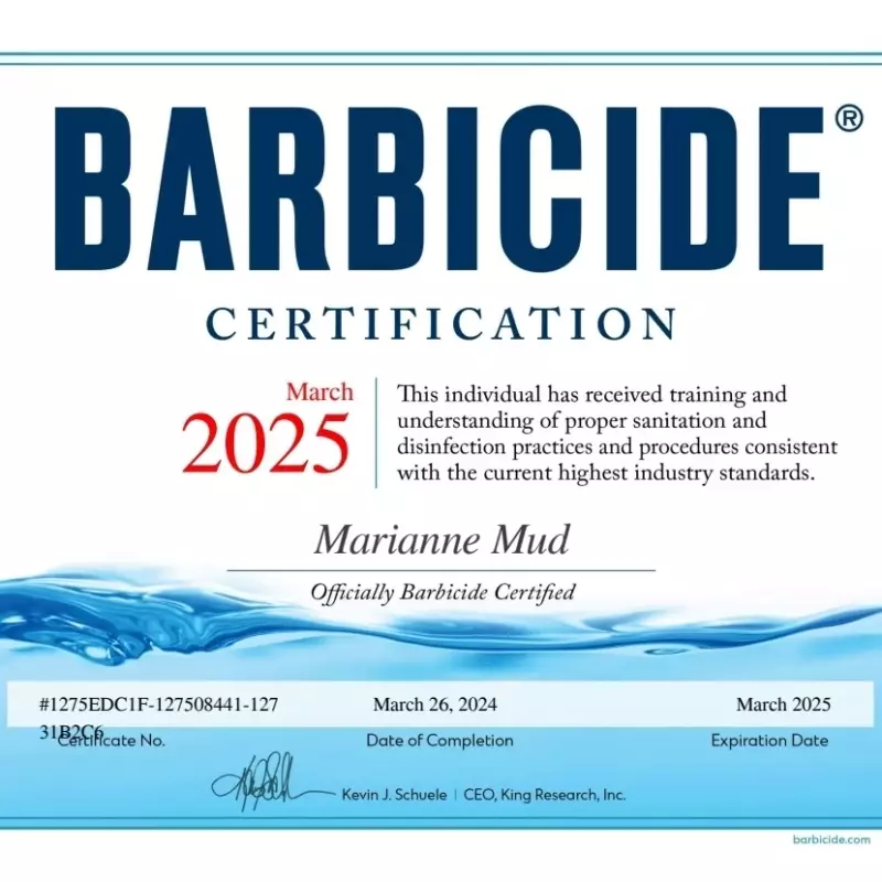 In mijn salon werk ik volgens de geldende hygiënevoorschriften. Elke klant krijgt een nieuwe vijl en wordt alles grondig schoongemaakt met Barbicide. Tijdens de behandeling draag ik altijd handschoenen om optimale hygiëne te waarborgen. Daarnaast verkoop ik 100% natuurlijke verzorgingsproducten zoals Dadi'Oil & Dadi'lotion om niet alleen mooie nagels te creëren, maar ook bij te dragen aan een gezonder leven.